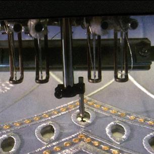 【雕孔繡】是借助雕孔刀或雕孔針等工具在繡花機上雕孔后進包邊刺繡,這樣做出的繡孔比較漂亮。【獵邊繡】其實與一般的平繡無異。只是在完成繡品的加工后,由后道的雜工,用電烙鐵在需要留孔的地方燙割,達到同雕孔差不多的效果,獵邊繡多見于領花。并且所用布料,必須是帶化纖性質的布料,才適合獵邊。純棉布料只適合雕孔繡而不適合獵邊繡。因為棉布遇熱燃燒后變成碳。象雕孔繡和獵邊繡看起來是很相似,但打法是一點都不同。雕孔繡有分原裝機和平繡機,市場上現(xiàn)在還新研發(fā)了激光機,不過技術不成熟,到目前為止,還是很少人在用。用原裝機的也少之又少,做雕孔還是用平繡機的多.